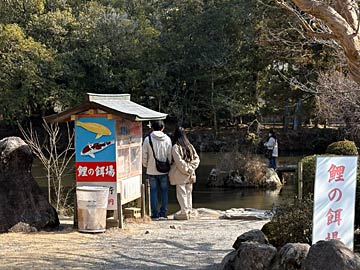 左に見えるのは菱形池。あちらこちらにある池には、鯉のえさが置いてありました。