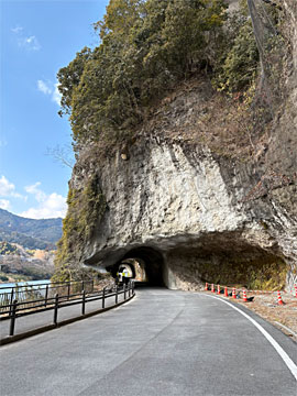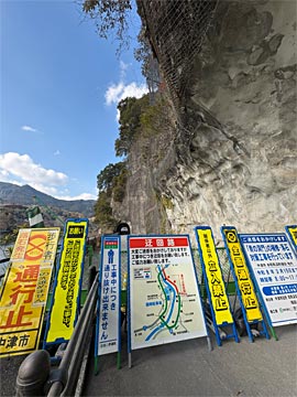 落石対策工事中で、通行止めでした。(青の洞門)